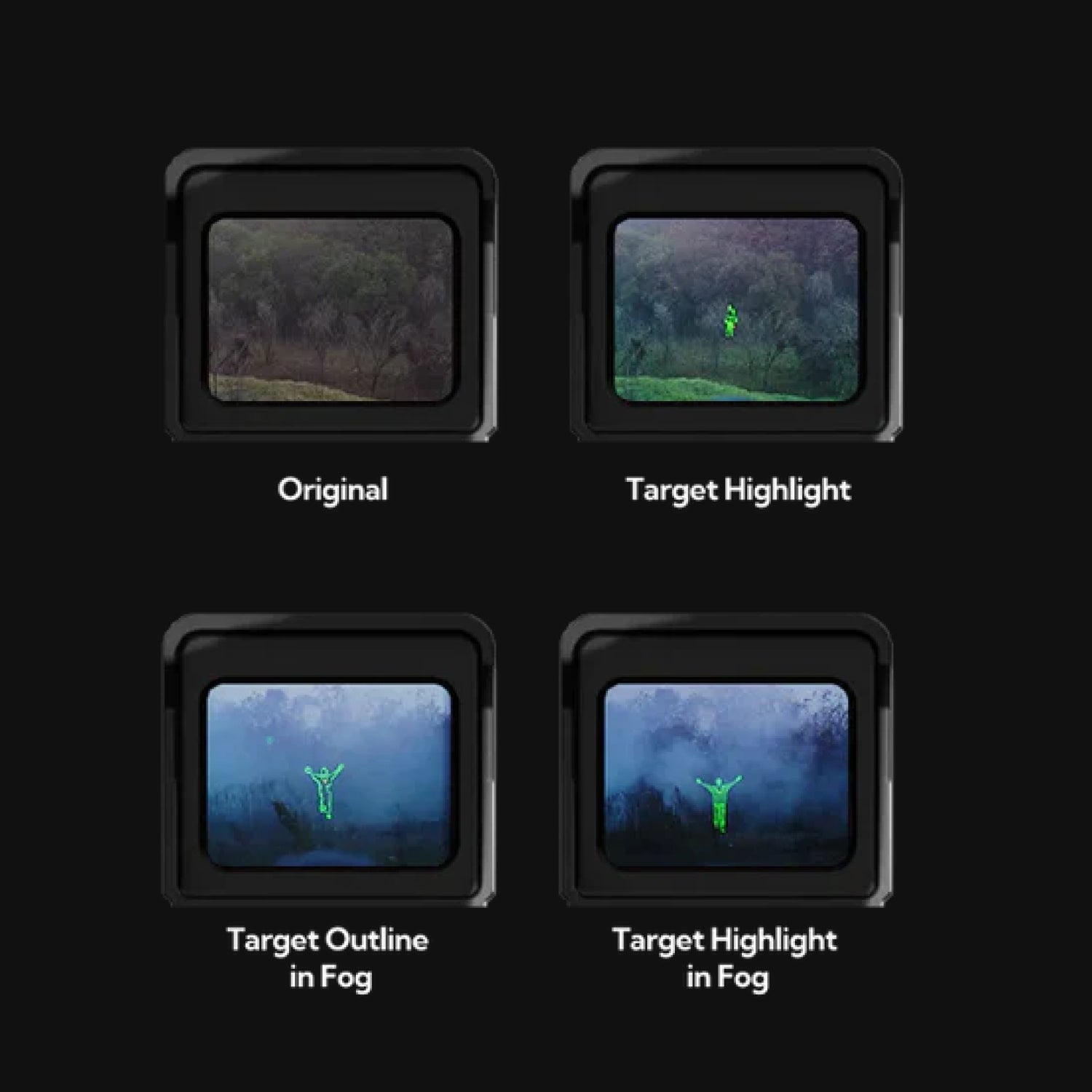 - Modes: Red Dot, Thermal, Outline, Highlight