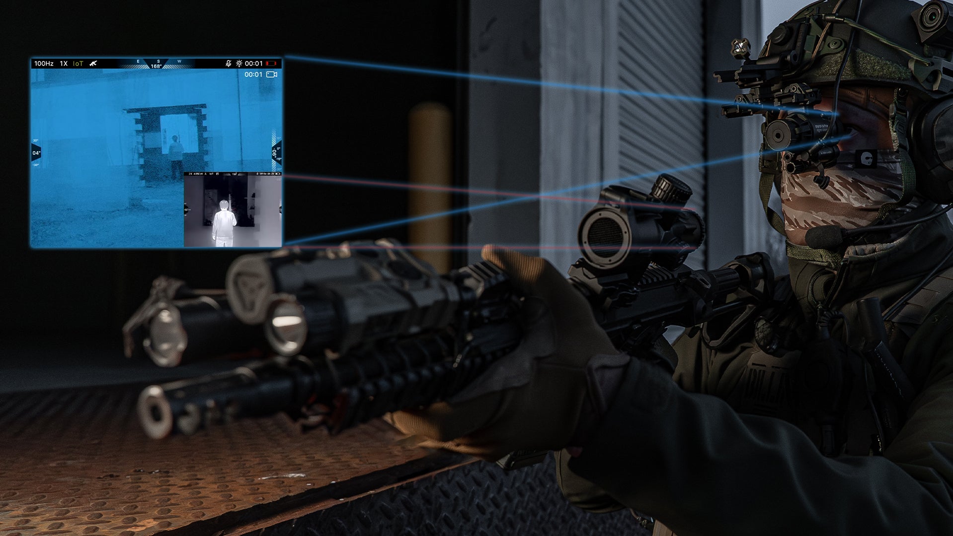 Enables wireless synchronization between weapon optics and helmet displays, offering real-time image transmission and battlefield awareness.